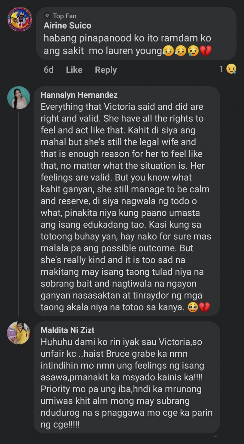 Ramdam na ramdam din ng ilang sa netizens ang sakit na sinapit ni Victoria (Lauren Young), ang legal na asawa ni Bruce.
