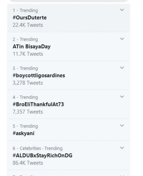 Ang #ALDUBxStayRichOnDG ay nasa top trending list ng Twitter Philippines hapon pa lamang ng Sabado, April 4.