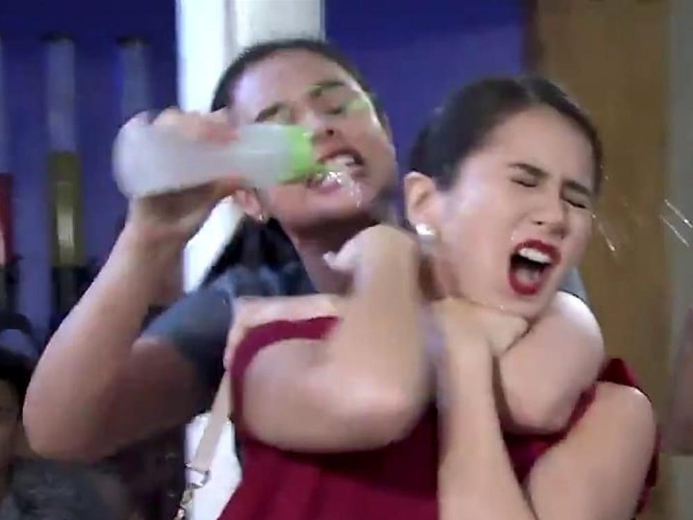Sa init ng kanilang bangayan, sinabuyan ni Jessie si Reign ng iba't ibang sawsawan tulad suka, patis at toyo.