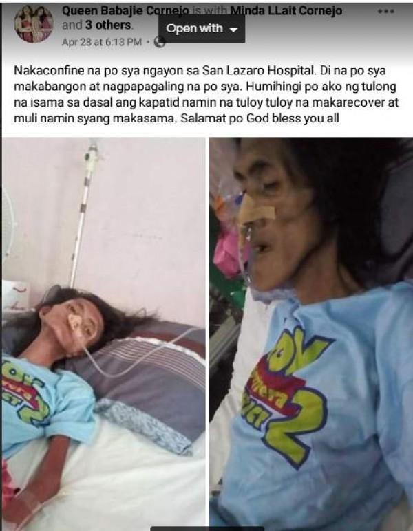 Bago ito, sinabi rin sa post sa Facebook ni Babajie na naka-confine siya sa San Lazaro Hospital.