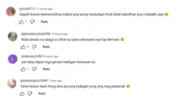 Nanggigil din ang Love. Die. Repeat. viewers sa YouTube dahil sa pagiging makasarili ni Chloe.