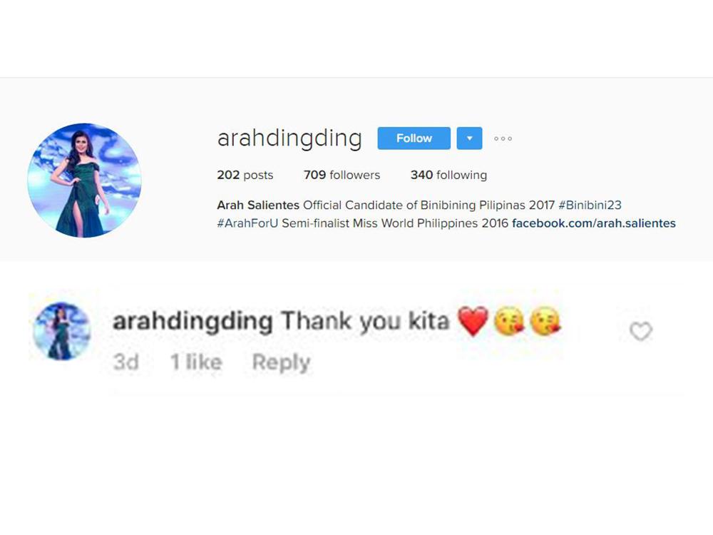 Saad niya, “Woooh! Go @arahdingding #binibini23 #bbpilipinas2017 #binibiningpilipinas2017 #bbp2017 #bbp17 @richiebondoc”