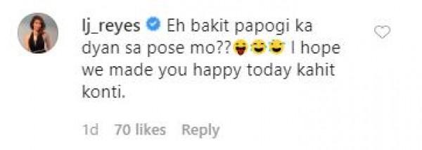 LJ Reyes reacted to heartwarming IG post of Paolo saying, "Eh bakit papogi ka dyan sa pose mo?? I hope we made you happy today kahit konti."