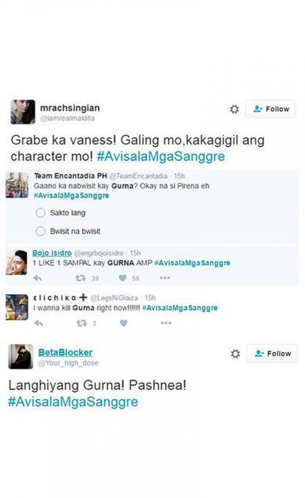 Dahil sobrang effective ng acting ni Vaness sa kanyang character, hindi napigilan ng viewers na kasuklaman ang role niyang si Gurna. Narito ang ilang tweets ng netizens: