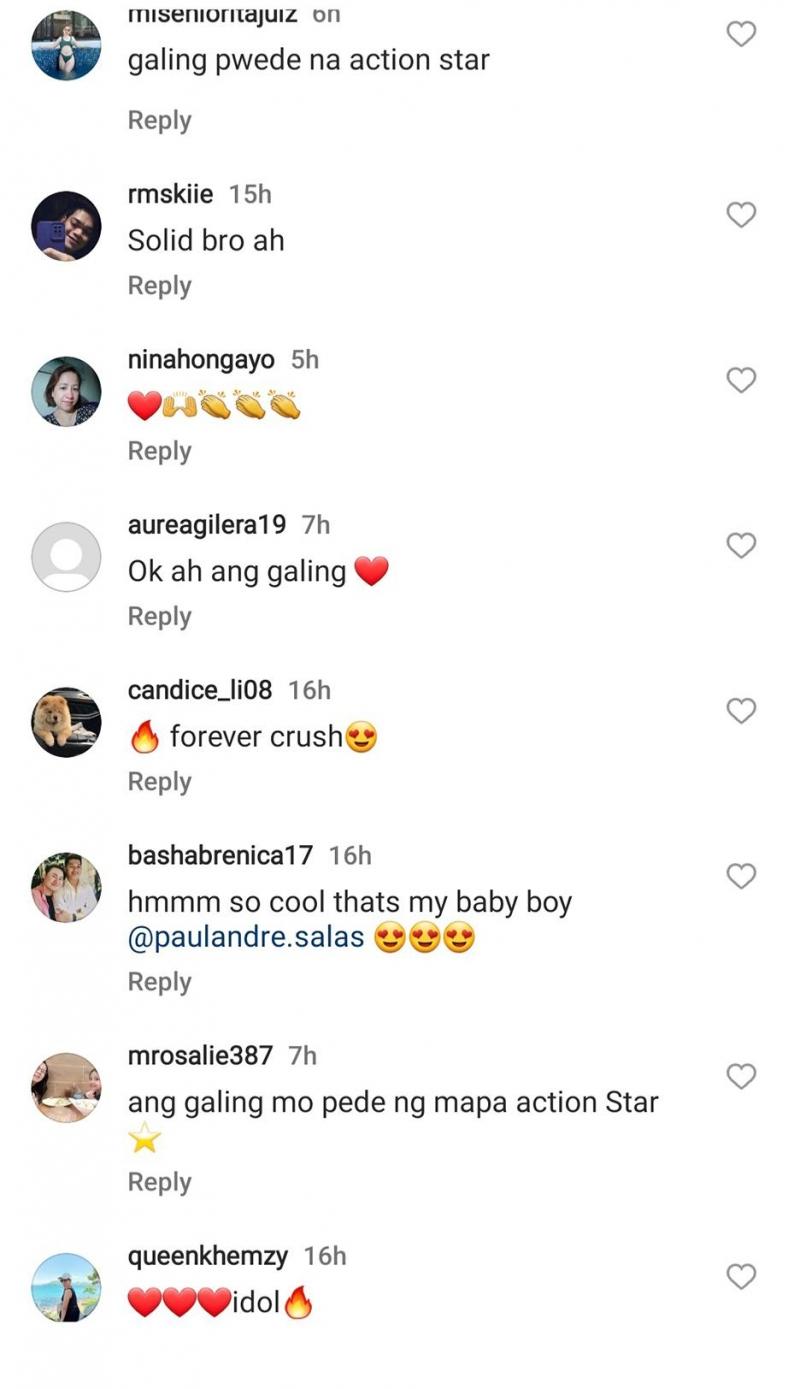 “Ang galing mo [puwede] nang action star,” @mrosalie387 reacted.