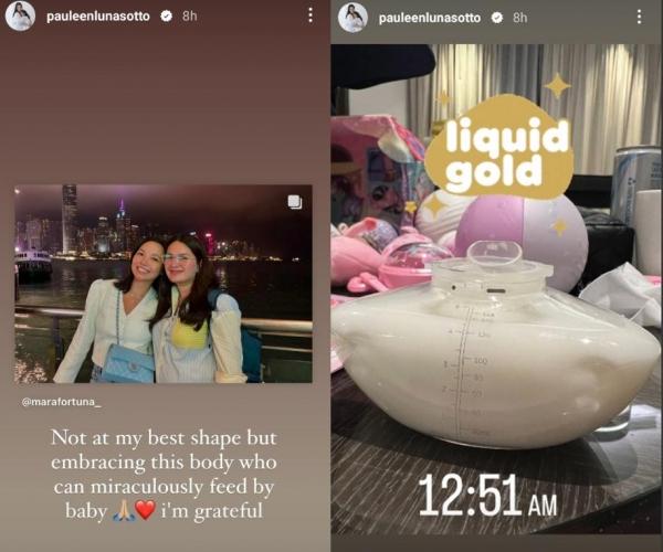 In her post via Instagram Story, Pauleen uploaded a photo with Mara Sotto-Fortuna and wrote in the captions, “Not at my best shape but embracing this body who can miraculously feed my baby. I'm grateful.”