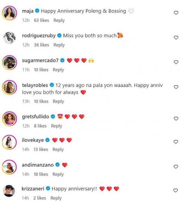 Pauleen's Instagram post was flooded with heartfelt messages from fellow celebrities congratulating them on their anniversary including Maja Salvador, Andi Manzano, and former Owe My Love actress Ruby Rodriguez.
