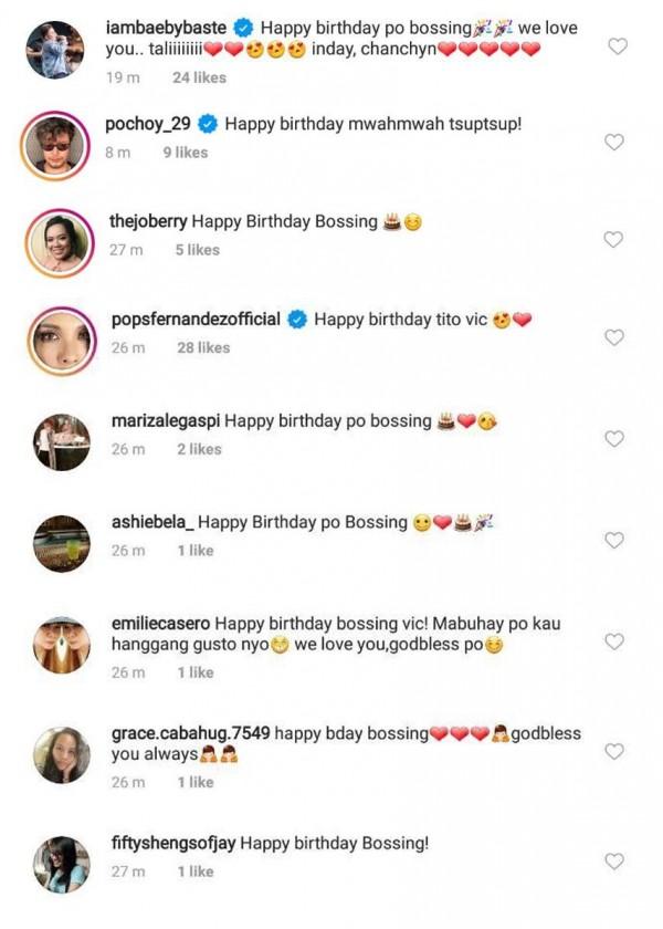 Celebrities greet Bossing Vic Sotto a happy birthday. | Source: pauleenlunasotto (IG)