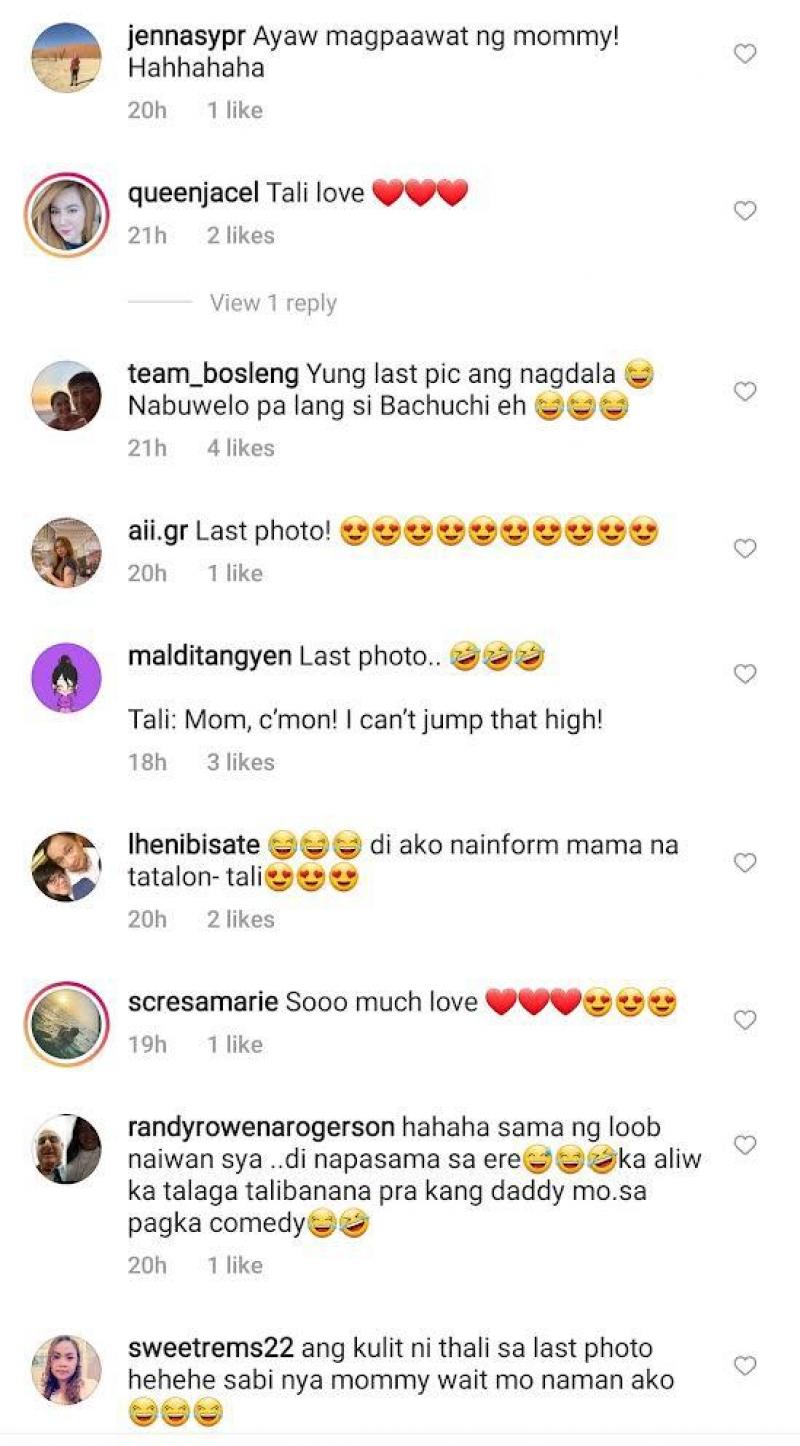 "Parang nagulat si Tali sa taas ng talon mo sa last pic," biro ni @joamps3.