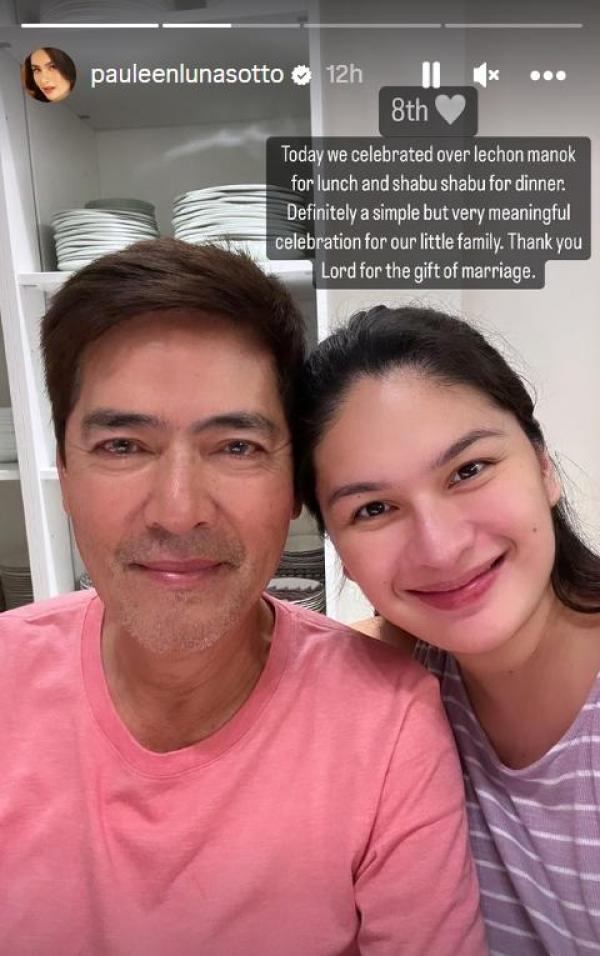 Open 24/7 comedian Vic Sotto and Pauleen Luna opted for a low-key celebration to mark their 8th wedding anniversary.