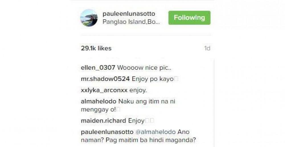 Isang netizen ang nag-react sa larawang ipinost ni Pauleen kung saan napansin nito ang morena skin ni Maine Mendoza.