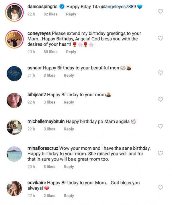 The comments section was bombarded by greetings from fans, friends, and family members including half-sibling Danica Pingris and her mom Coney Reyes.