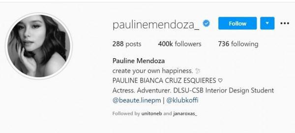 Promising actress Pauline Mendoza has more reasons to smile this November. Her Instagram account has reached 400,000 followers!