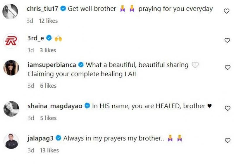 Several celebrities also showed their support to LA on Instagram, while he is on the road to recovery including iBilib host Chris Tiu, host Bianca Gonzalez-Intal, and former Gilas Pilipinas member Jimmy Alapag.