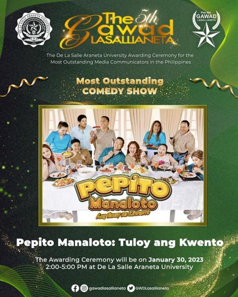 Meanwhile, his show Pepito Manaloto, was chosen as the Most Outstanding Comedy Show of the award-giving body.