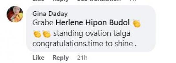 "Grabe Herlene Hipon Budol 👏👏👏 standing ovation talga congratulations.time to shine." pahayag naman ng Facebook user na si Gina Daday.