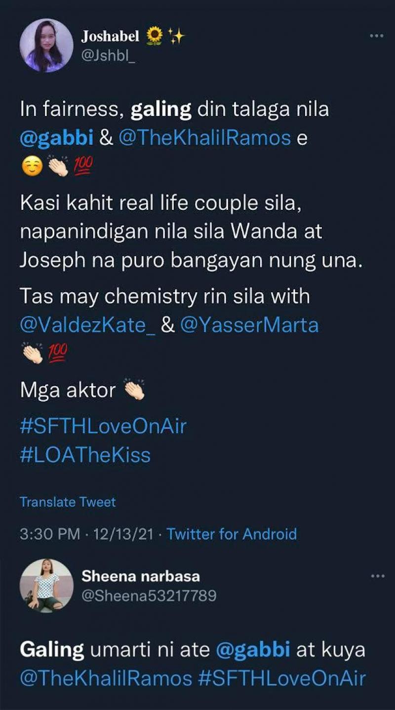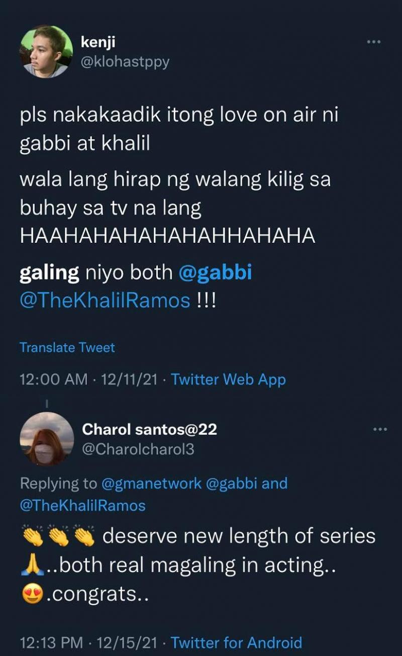 Bumuhos ang emosyon ng celebrity couple sa nasabing eksena na ikinagulat at ikinabilib ng maraming viewers. Sa Twitter idinaan ng netizens ang kanilang paghanga sa galing sa pag-arte nina Gabbi at Khalil.