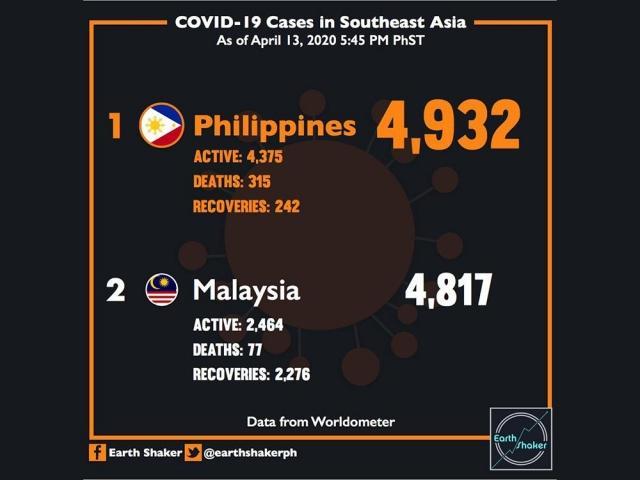 JUST IN: Based on the latest updates from both countries, Philippines has now the highest confirmed #COVID19 cases in Southeast Asia with 4,932.