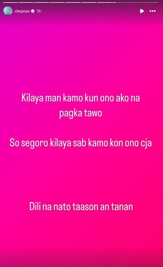 In a series of Instagram stories, Philmar wrote his statement in his native language.
