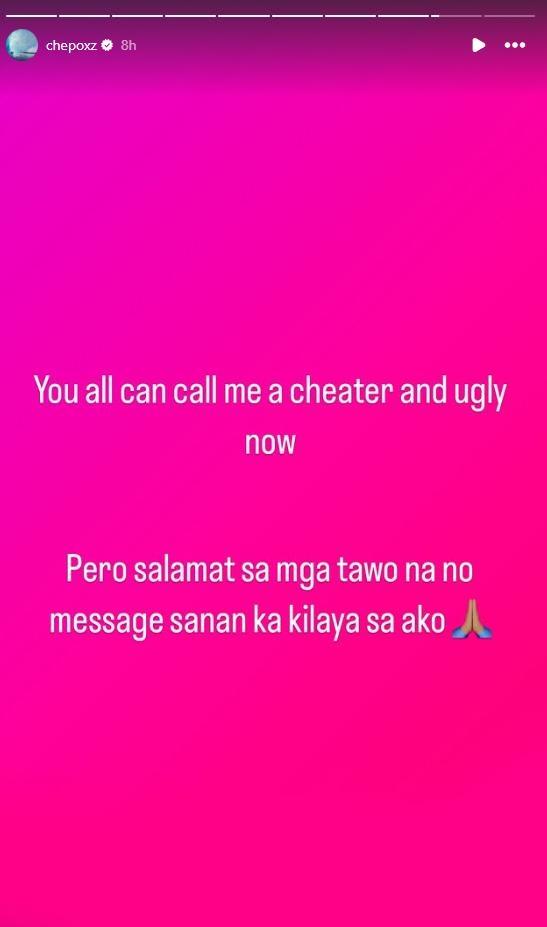 In the end, Philmar acknowledged all criticisms from netizens. ""You all can call me a cheater and ugly now. But thank you to the people who truly know me."