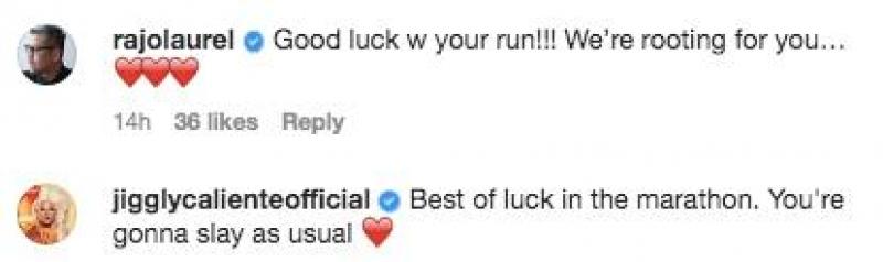 "Best of luck in the marathon. You're gonna slay as usual,” she commented.
