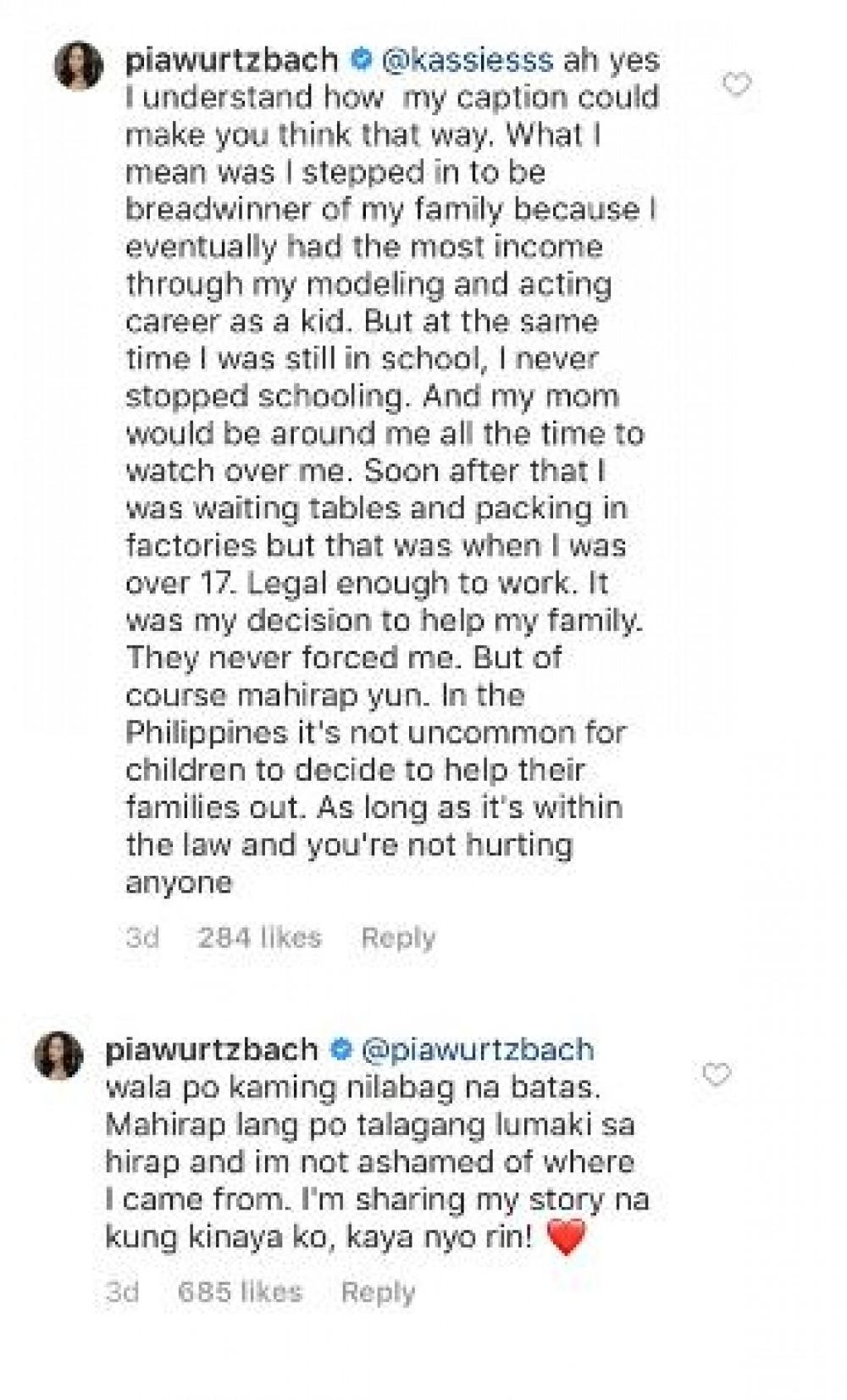 Hindi inaasahan ng former Miss Universe 2016 Pia Wutzbach na magiging kontrobersyal ang naging Instagram (IG) post niya tungkol sa pagiging breadwinner sa murang edad.