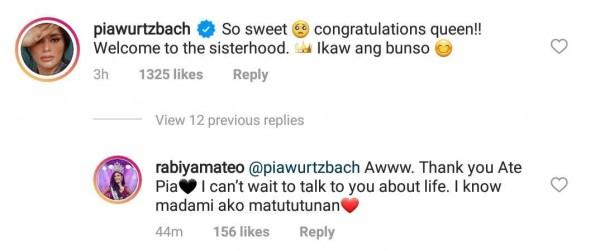 In reply, Rabiya wrote, “Aww! Thank you, Ate Pia. I can't wait to talk to you about life. I know madami ako matututunan.”