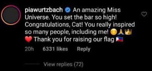 Pia posted this touching message for Catriona in the comment section of her Instagram post; wherein she reflected on her journey as the 4th Filipino to win the Miss Universe.