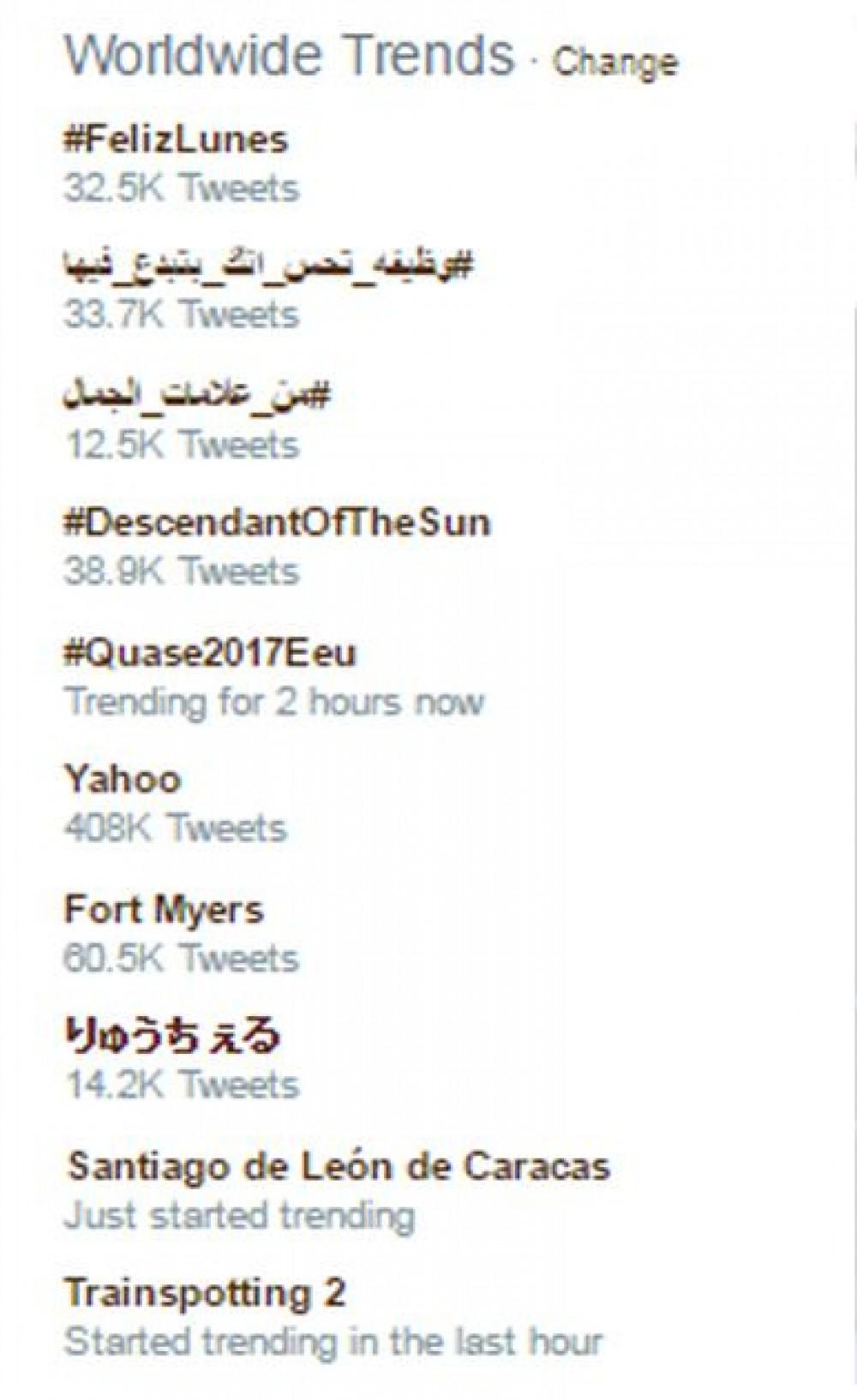 Nag-trending naman ang pangalan ng aktor na si "Song Joong Ki" na gumaganap bilang si Captain Lucas Yoo. Pati ang "DOTS" na acronym ng Descendants of the Sun ay nag-trending din habang umeere ang show.