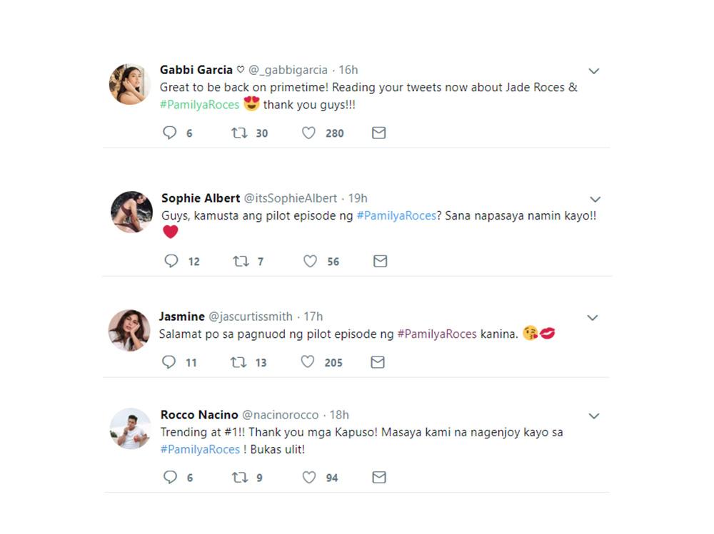 Nagpasalamat naman ang ilang cast members sa mga sumuporta sa unang gabi ng Pamilya Roces.
