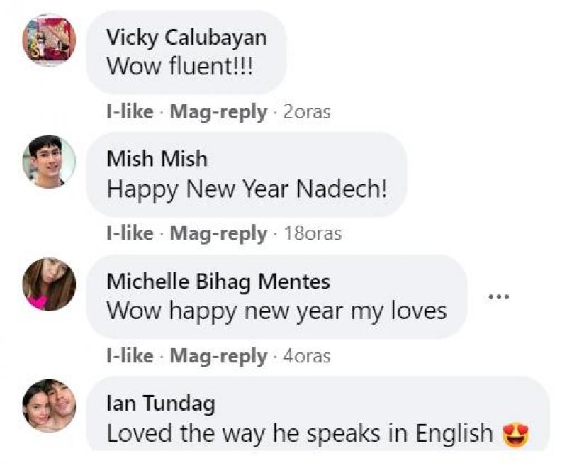 Sa video na naka-post sa GMA The Heart of Asia Facebook page, binati ng aktor ang kaniyang mga fans ng happy new year at hiniling na sana ay masaya ang mga ito at maging maligaya ang kanilang bagong taon. Hinangad din ni Nadech na matupad lahat ng hiling ng kaniyang mga tagahanga.