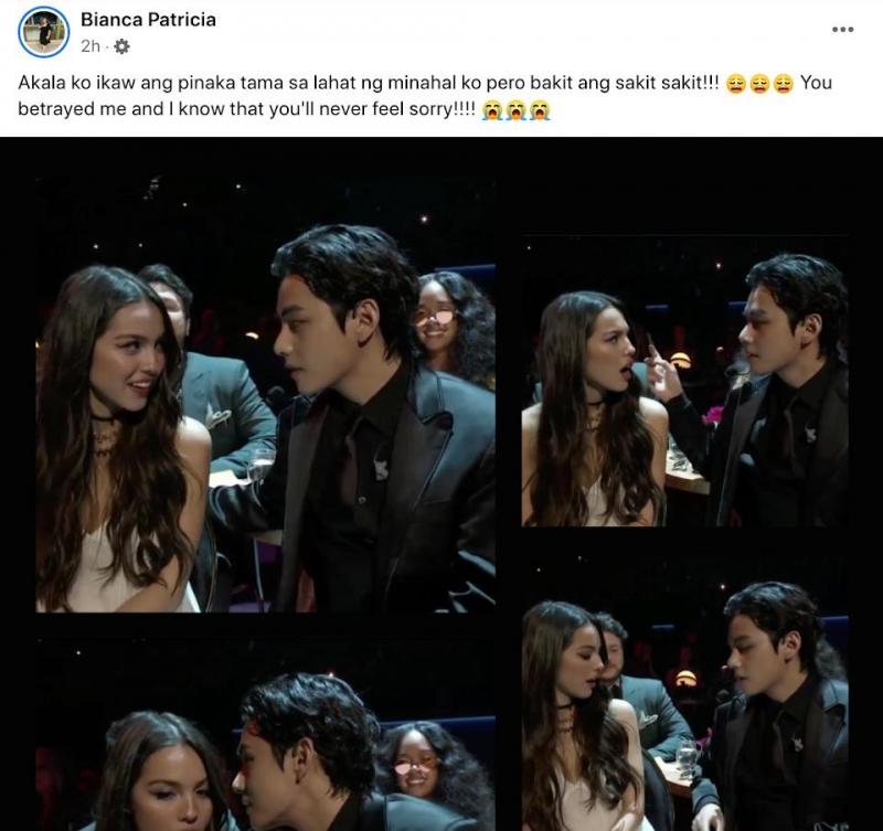 Sa mga larawan na kumalat online, magkasama ang dalawang singer kung saan makikita ang titigan nila at paglalapit ng kanilang mga mukha habang may ibinubulong si V kay Olivia.
