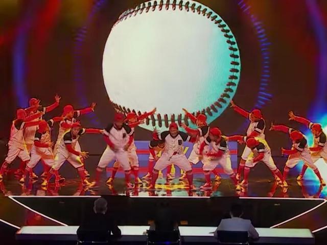 The 16-member dance group performed a baseball-themed routine, dancing to the tune of Taylor Swift's "Shake It Off."