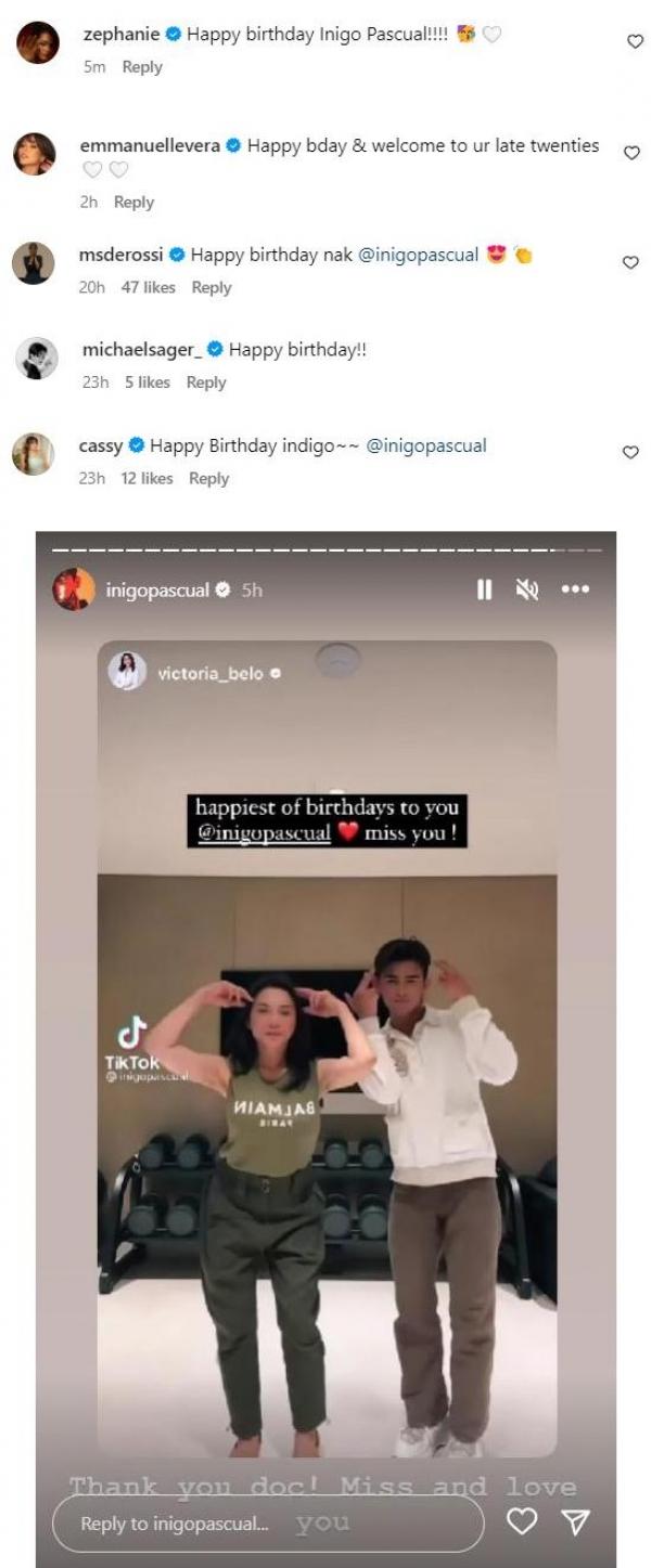 Some of those who greeted Iñigo include celebrity doctor Vicki Belo, Alessandra de Rossi, Sparkle actress Cassy Legaspi, and singer Zephanie.