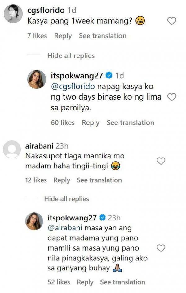 May isang netizen naman na nakapansin ng pinamili ni Pokwang ay tingi-tingi raw. Sagot naman ng Sparkle star, "Masa yan ang dapat madama yung paano mamili sa masa yung pano nila pinagkakasya, galing ako sa ganyang buhay"