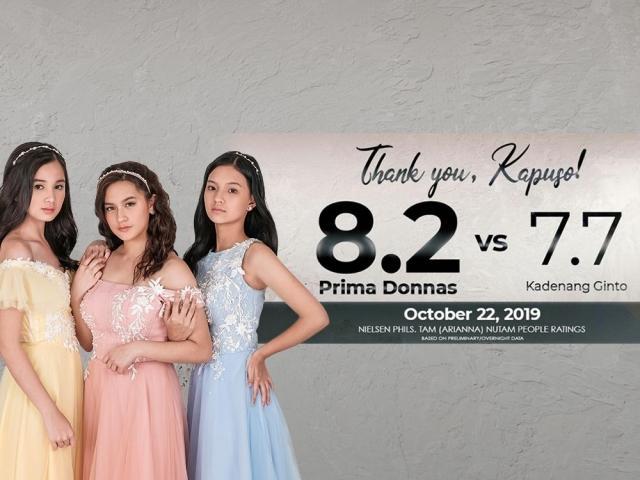 Ayon sa NUTAM People Ratings noong Martes, Oktubre 22, lamang ang Prima Donnas sa katapat nitong programa sa kabilang network.