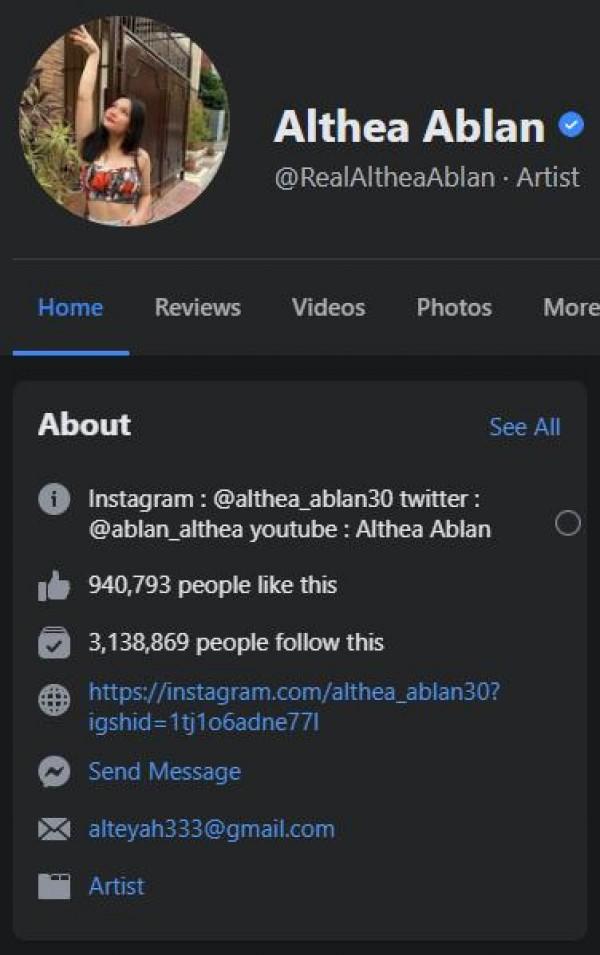 Althea usually shares on her Facebook page her Instagram posts and TikTok videos, which garnered thousands of likes and comments.