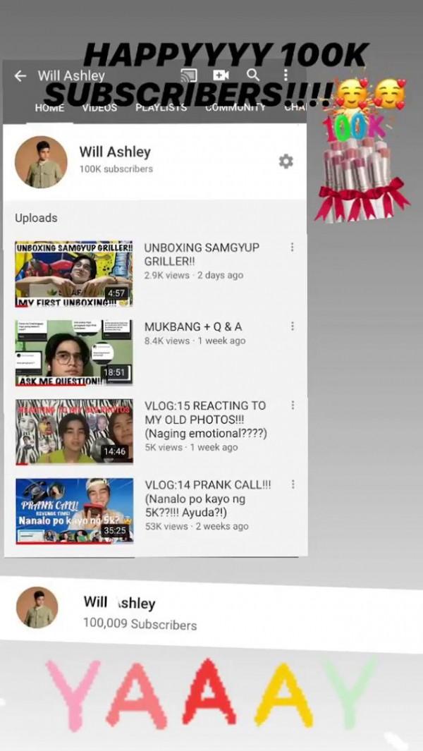 Kapuso tween actor Will Ashley is set to receive his Silver Play Button from YouTube after his channel has reached 100,000 subscribers.