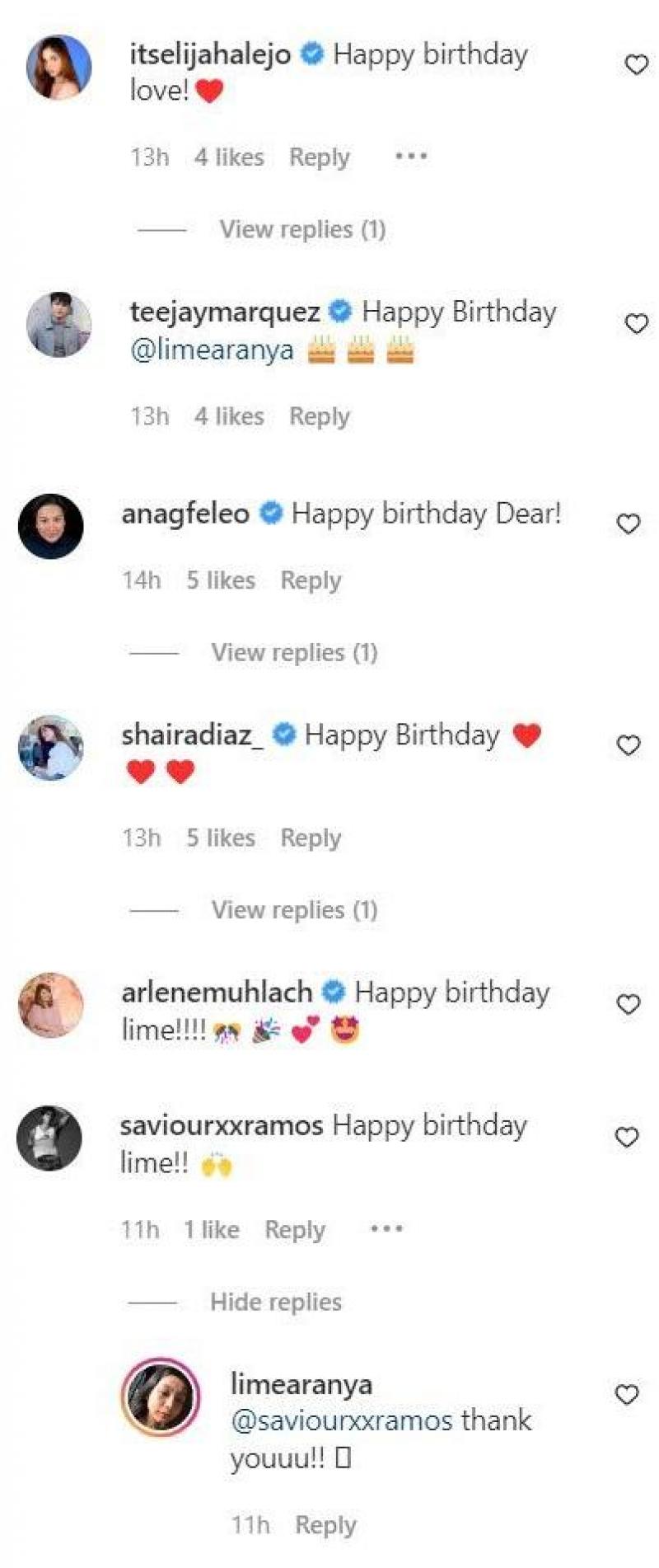 Several Kapuso stars also greeted Lime on her special day including Sparkle mentor Ana Feleo, Elijah Alejo, and Shaira Diaz-- Lime portrayed the young Elsie, Shaira' scharacter in Lolong.