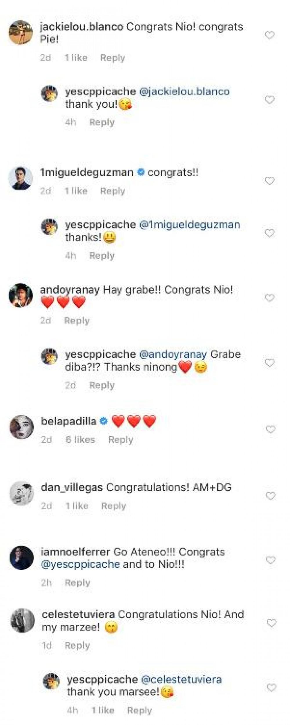 Sa kaniyang Instagram post, nagpaabot ng pagbati si Cherry Pie para kay Nio na nakakuha ng academic silver medal at parangal na Gawad San Juan de Brebeuf sa Katangi-tanging Manlalaro.