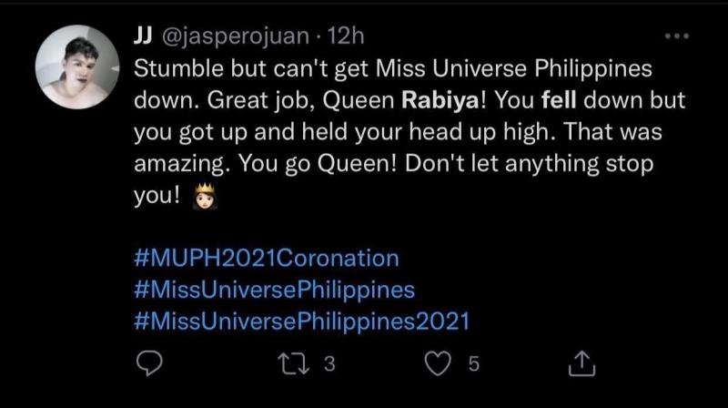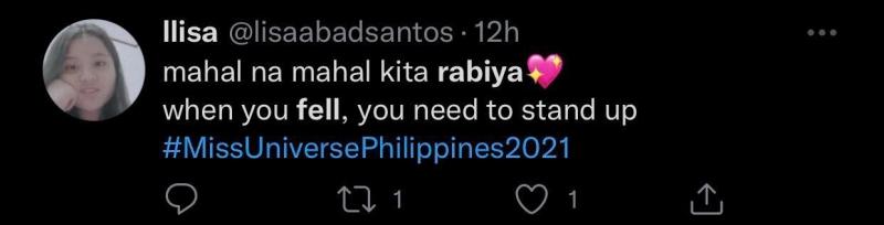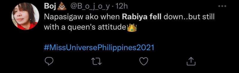 Matapos ang hindi inaasahang eksena, marami pa ring nag-cheer at nag-paabot ng positive reactions para kay Rabiya Mateo habang isinasagawa ang tribute segment nito sa pagtatapos ng kanyang reign sa mismong coronation night ng Miss Universe Philippines 2021 kagabi.
