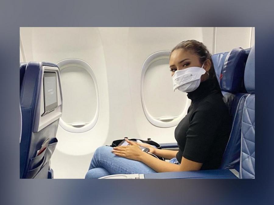 Her arrival was shared in an update by Miss Universe Philipines creative director Jonas Gaffud, who was one seat away from the beauty queen.