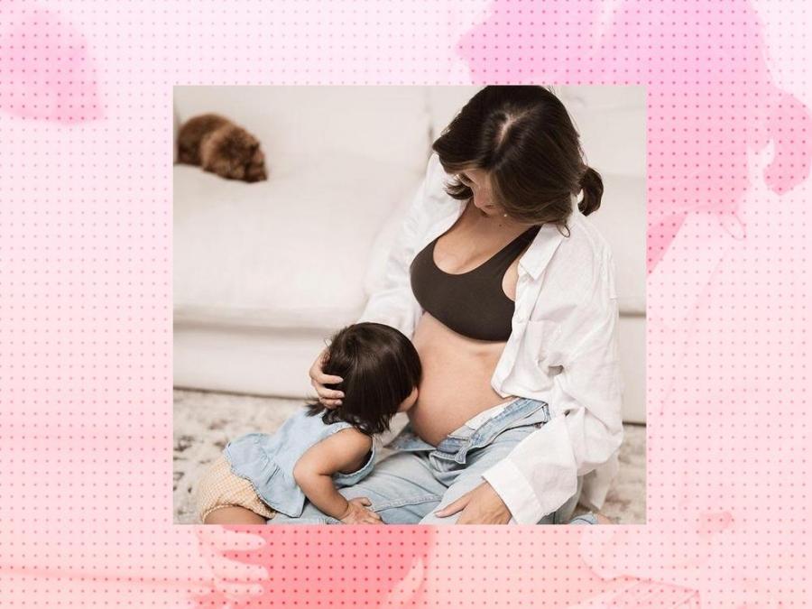 The beauty queen shared on Instagram heartwarming photos of their eldest, Kaia, kissing her baby bump.
