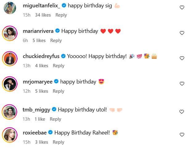 In the comments section, Raheel received love from his friends in showbiz including Kapuso Primetime Queen Marian Rivera and Mga Batang Riles co-star Miguel Tanfelix.