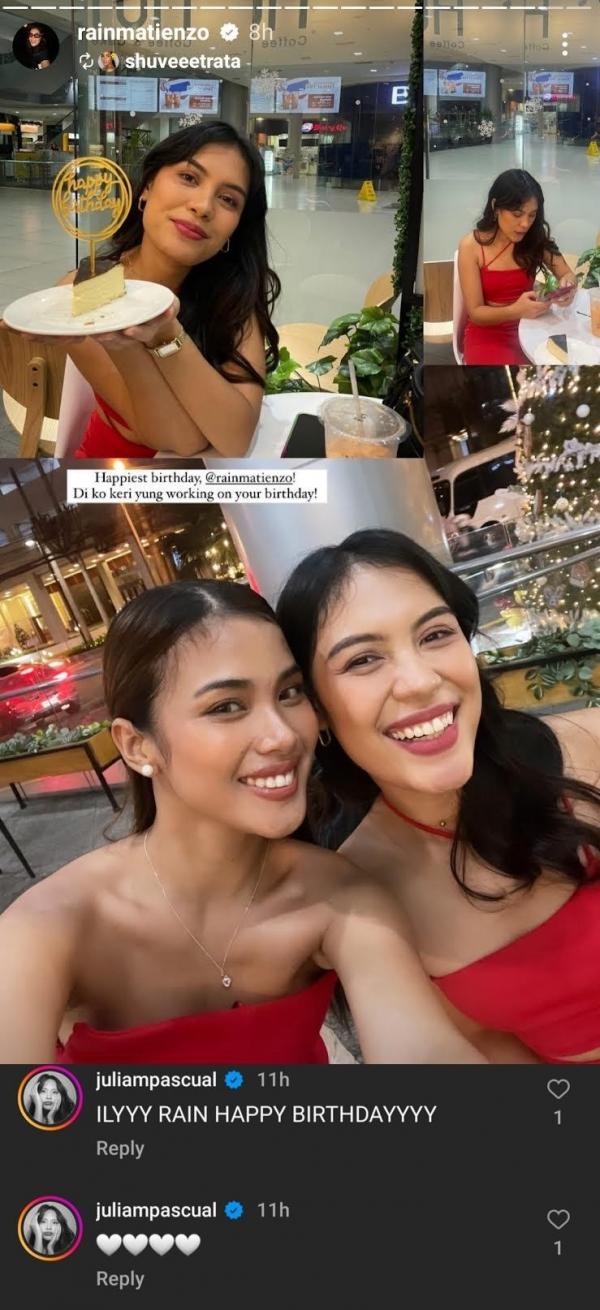 As seen on her Instagram story posts, Rain received a lot of love on her special day from her loved ones and fellow celebrities such as Shuvee Etrata. Sparkle actress Julia Pascual also greeted Rain on her birthday.