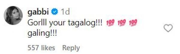 In the comment section, Gabbi Garcia applauded R'Bonney's way of speaking Tagalog. The two will share the hosting duties in Miss Manila 2024, which will air on Sunday, June 23, on GMA.