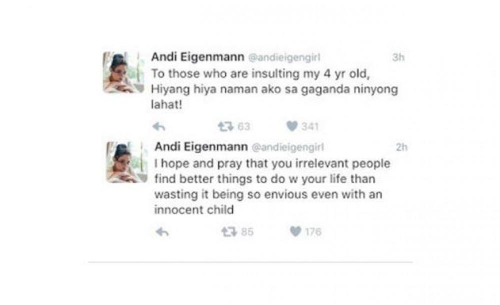 Kapamilya actress Andi Eigenmann, daughter of The Millionaire’s Wife star Jaclyn Jose, was shocked and upset after her child, Adrianna Gabrielle, was bashed on social media over a photo she uploaded on Instagram.