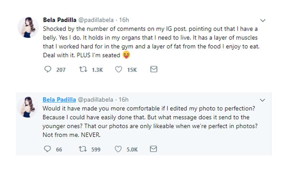 READ: Bela Padilla pumalag sa netizens na pinuna ang kaniyang tiyan sa Instagram