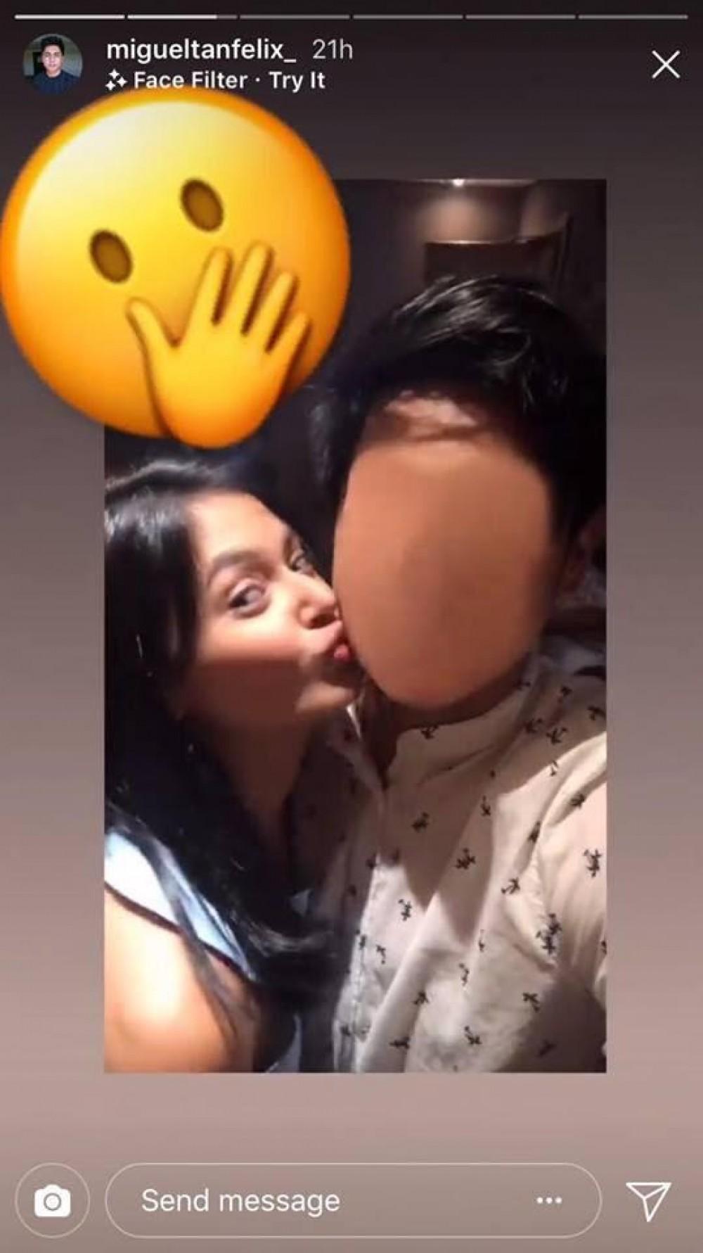 Ipinost naman ni Miguel sa kanyang Instagram Stories ang video kung saan hinalikan siya ni Bianca sa pisngi.