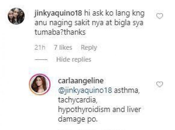 Carla said that she was diagnosed with hypothyroidism, which caused her weight gain and tachycardia or rapid heart rate.